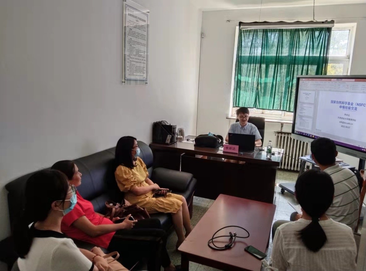 第二组会主要探讨绿色及心理相关的研究问题。由天津市哲学社会科学重点项目立项获得者王艳芝主持,她首先介绍了道德伪善还是不公平厌恶:基于不确定管理视角的绿色消费心理机制研究的背景、方法以及研究的切入点,然后就如何从现实问题中提炼理论问题等和大家进一步探讨。此外该组的两位获批教育部人文社科项目立项的青年教师郭海燕和胡玮璇分享了有关心理学和管理学、数智创新和管理学等交叉学科研究的申报经验。