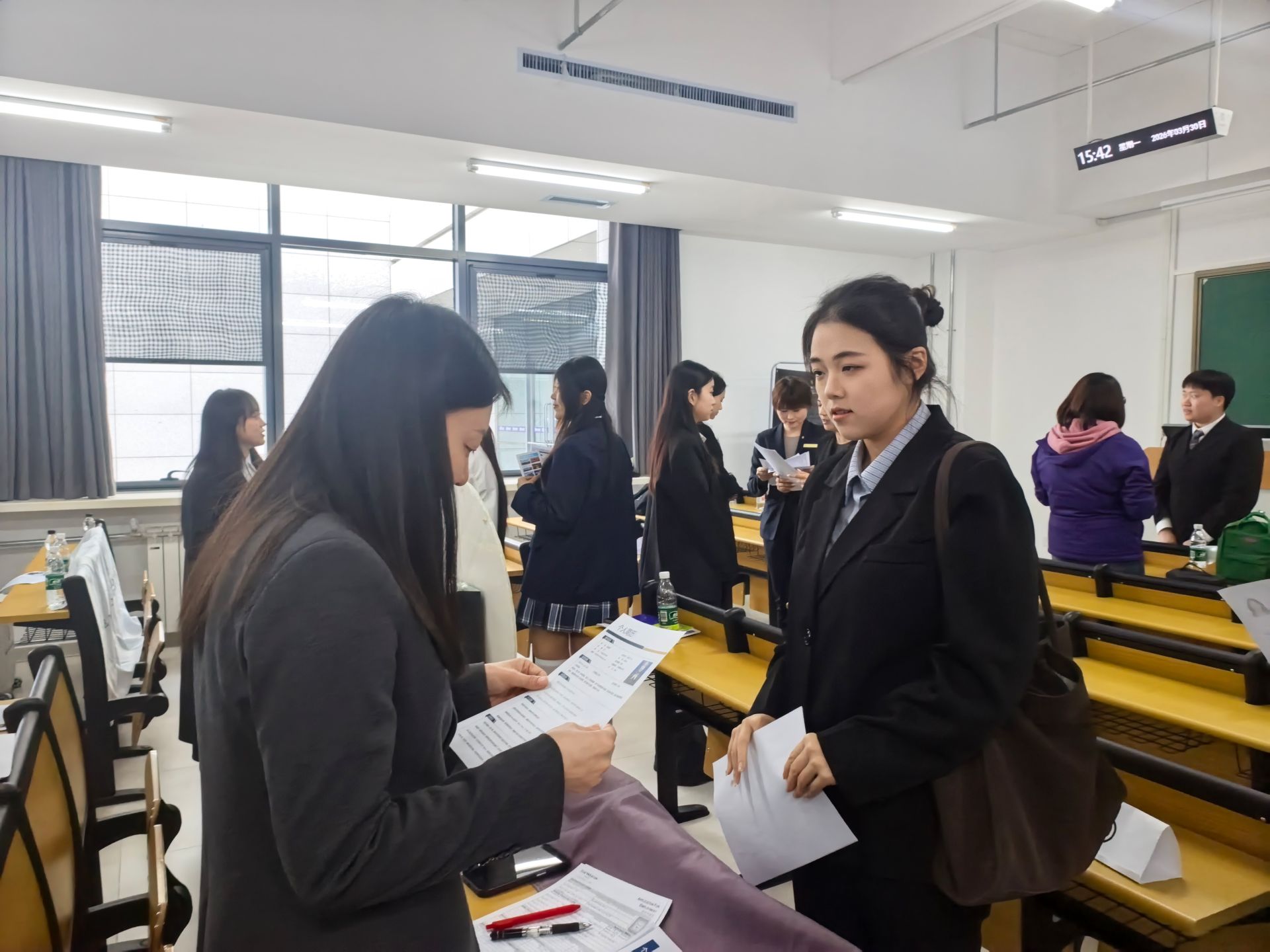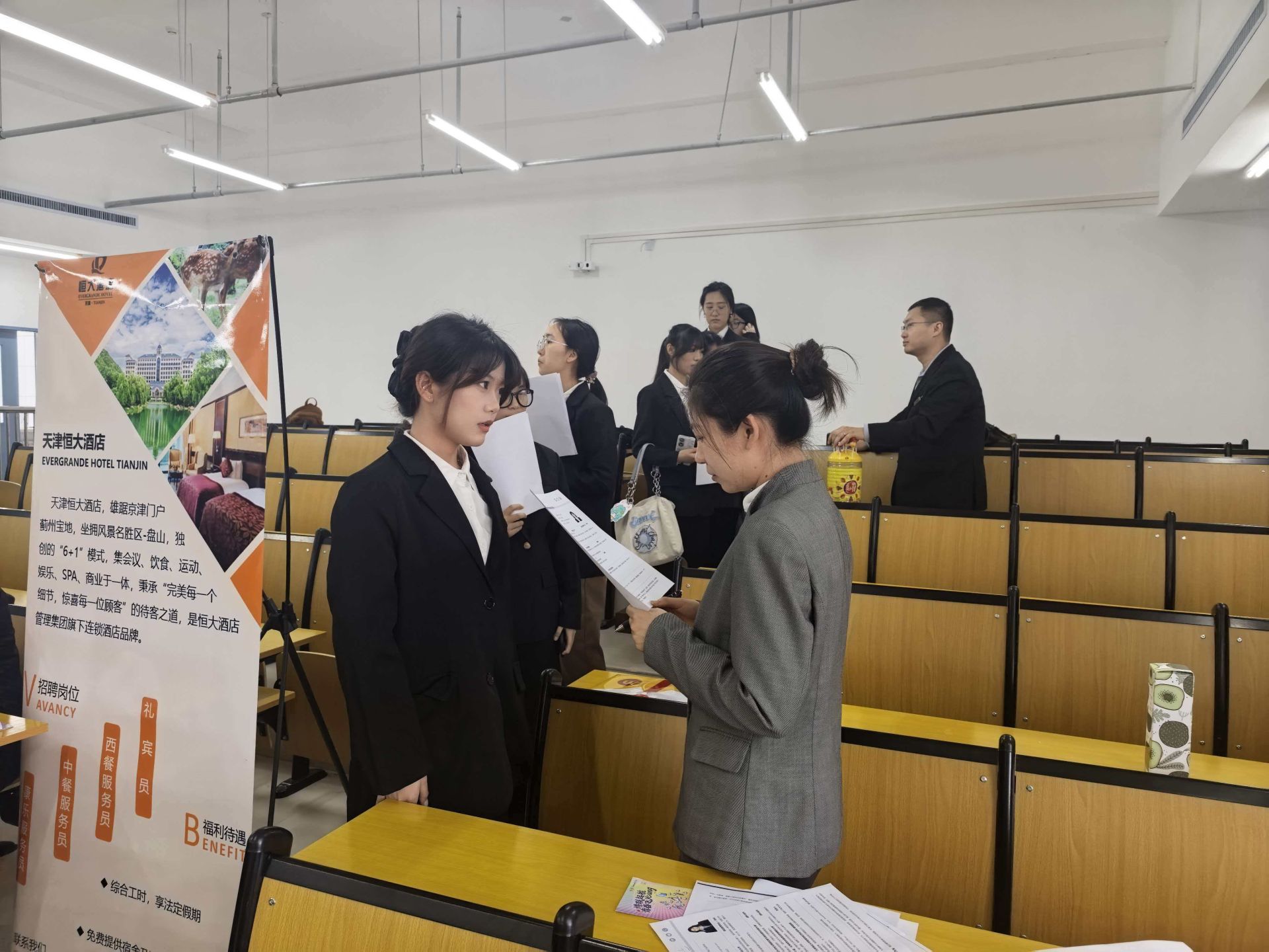 实习双选会现场秩序井然、氛围热烈。各单位负责人围绕企业文化、岗位需求、培养体系、职业发展通道等内容展开分享,全面介绍高端酒店行业发展前景与人才标准,帮助学生明晰职业方向、提升行业认知。同学们身着正装、手持简历,认真聆听、积极互动、自信展示,表现出天商学子良好的职业素养与精神风貌。本次双选会不仅是一次实习岗位对接,更是一堂沉浸式职场实训课,有效提升学生求职能力与岗位适配度,为顺利进入职场、实现高质量就业奠定坚实基础。